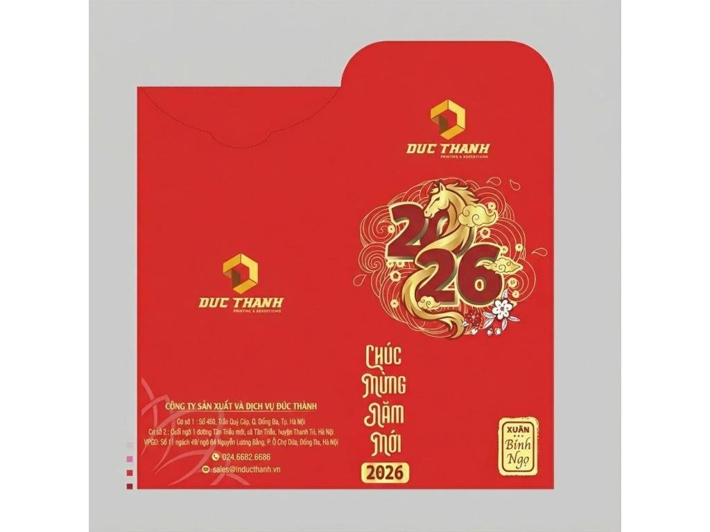 In bao lì xì Tết thương hiệu riêng không chỉ là một nét văn hóa đẹp mà còn là một chiến lược truyền thông thông minh, giúp doanh nghiệp tạo ấn tượng sâu sắc, tăng cường nhận diện và củng cố mối quan hệ với đối tác, khách hàng. Từ việc lựa chọn chất liệu, kỹ thuật in đến các chi tiết gia công tinh tế, mỗi yếu tố đều góp phần làm nên giá trị của sản phẩm. In Đức Thành tự hào là đối tác tin cậy, đồng hành cùng quý doanh nghiệp tạo ra những chiếc bao lì xì Tết 2026 độc đáo, chất lượng, góp phần mang lại một năm mới an khang, thịnh vượng và thành công rực rỡ.