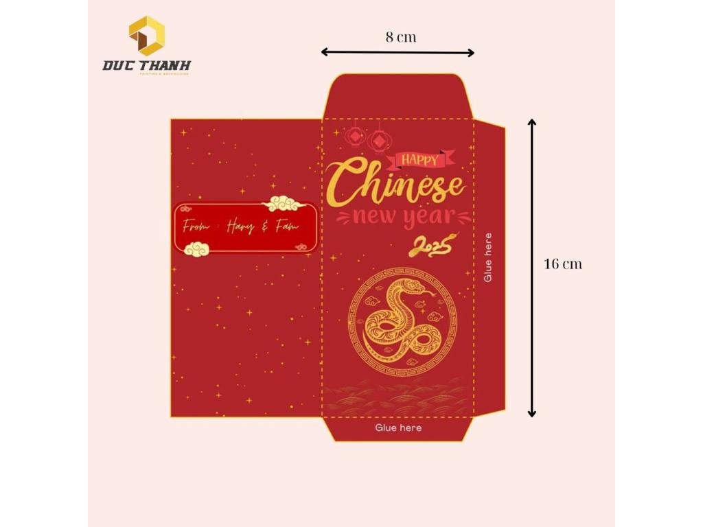 Kích thước 8x16cm vẫn được xem là “chuẩn vàng” trong ngành in bao lì xì Tết, bởi vừa tiện dụng, vừa tối ưu khi in số lượng lớn – giúp tiết kiệm chi phí mà vẫn đảm bảo tính thẩm mỹ cho thiết kế.