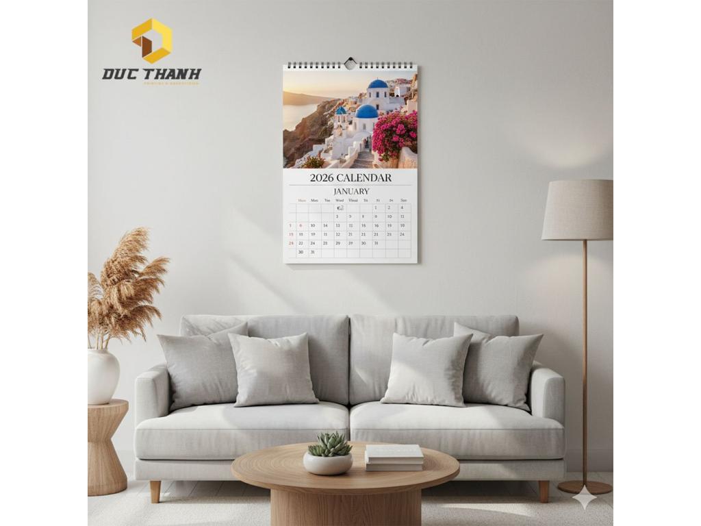 Đây là loại lịch quen thuộc, thường có kích thước lớn (30x40cm, 40x60cm…),dễ treo ở phòng khách, văn phòng. In lịch treo tường giúp hình ảnh thương hiệu xuất hiện nổi bật, sang trọng, được nhiều công ty chọn làm quà tặng số lượng lớn.